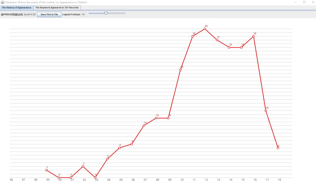 此外,对需要的节点进行右键点击,在选择“Citation History”可以具体查看某个节点频次时间上的变化。