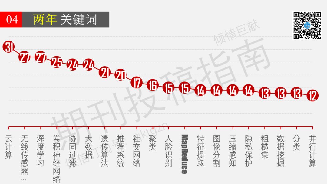 云计算:31 无线传感器网络:27 深度学习:27 卷积神经网络:25 协同过滤:24 大数据:24 遗传算法:21 推荐系统:20 社交网络:17 聚类:16 人脸识别:15 MapReduce:15 特征提取:14 图像分割:14 压缩感知:14 隐私保护:14 粗糙集:13 数据挖掘:13 分类:13 并行计算:12